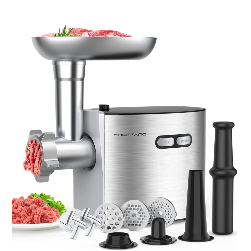 The comprehensive package includes three stainless steel cutting blades, five grinding plates, sausage stuffing accessories, and even a kubbe making attachment. This complete grinding system transforms raw ingredients into ground meat, sausages, and specialty items with restaurant-quality results that justify its premium positioning in the market.