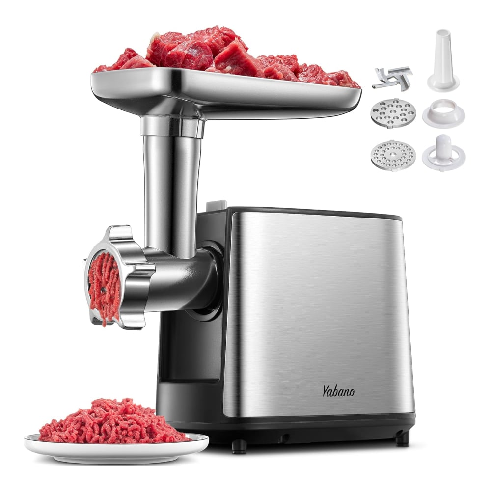 The Yabano Meat Grinder delivers solid performance with its 450W motor that peaks at 3000W for handling tougher grinding tasks. This unit efficiently processes meat while maintaining compact dimensions that won't dominate your kitchen counter, making it suitable for occasional users and those with limited space.