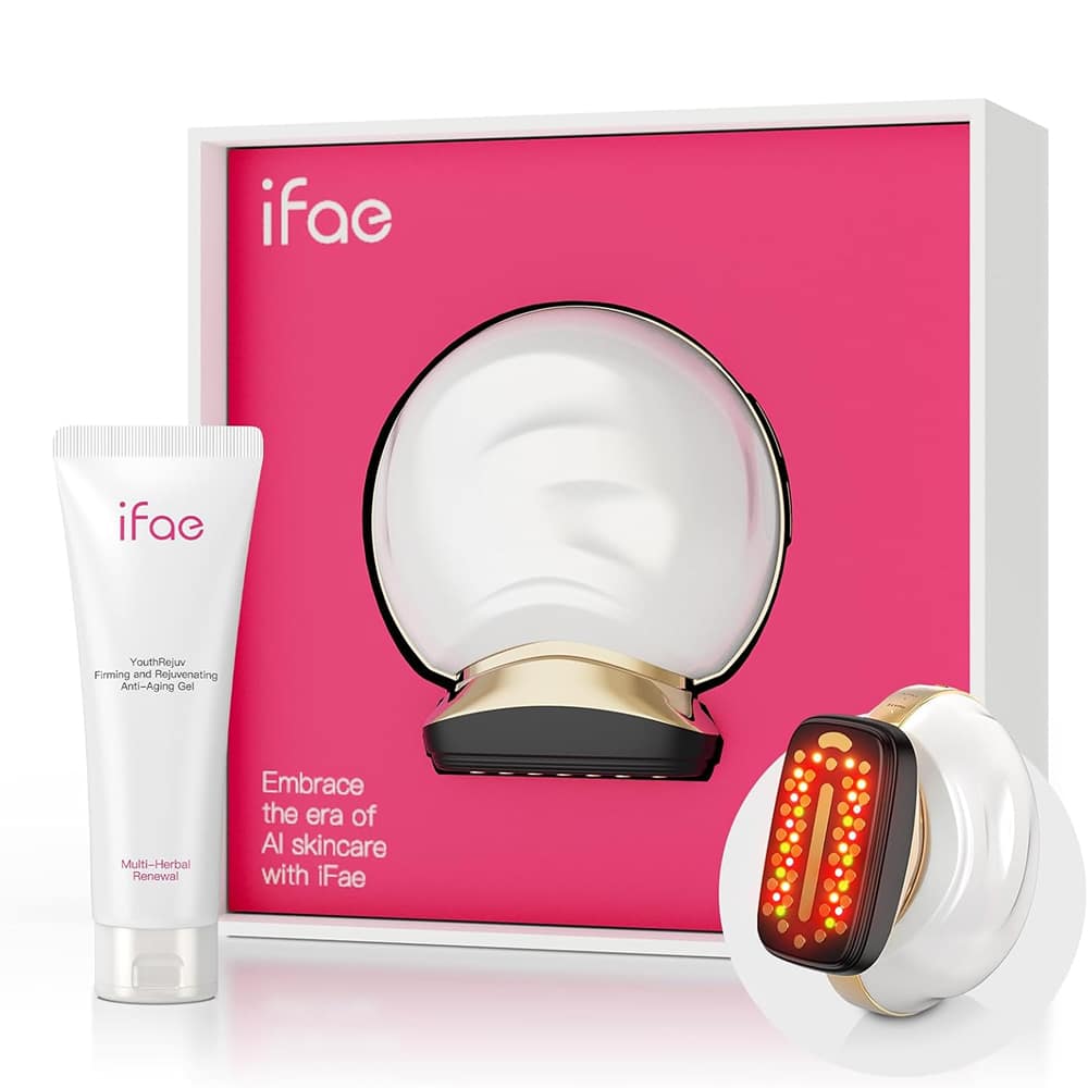 The IFAE Face Tightening Device combines microcurrent technology with red light therapy for comprehensive facial rejuvenation. This dual-action approach stimulates facial muscles while promoting collagen production through 630nm red light.