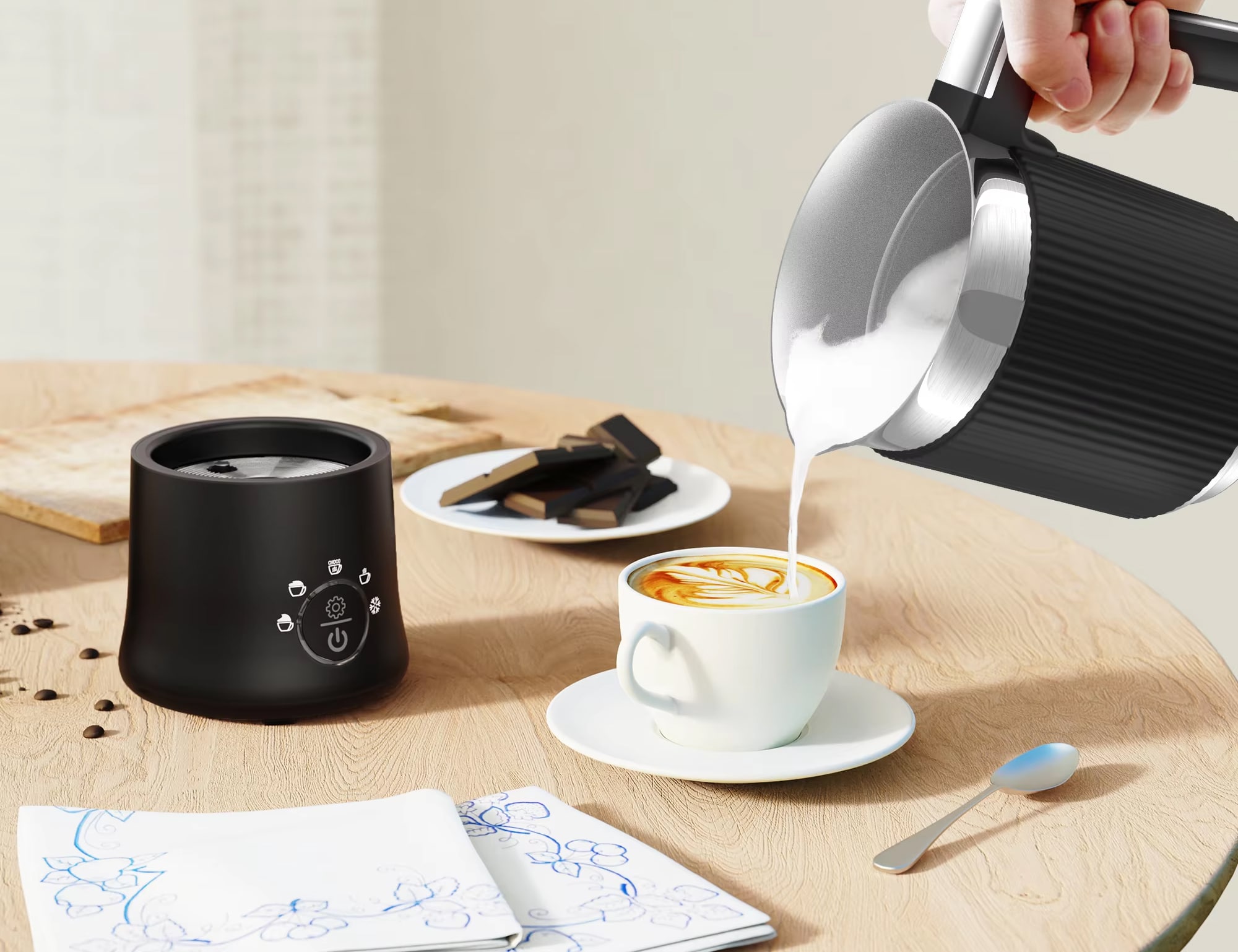 The ceramic-coated interior ensures long-term durability while facilitating easy cleaning, and the dishwasher-safe design adds convenience to its premium feature set. With two precise heat settings, it offers optimal results for different beverages, from delicate flat whites to robust cappuccinos, creating remarkably stable foam that holds structure perfectly for latte art.