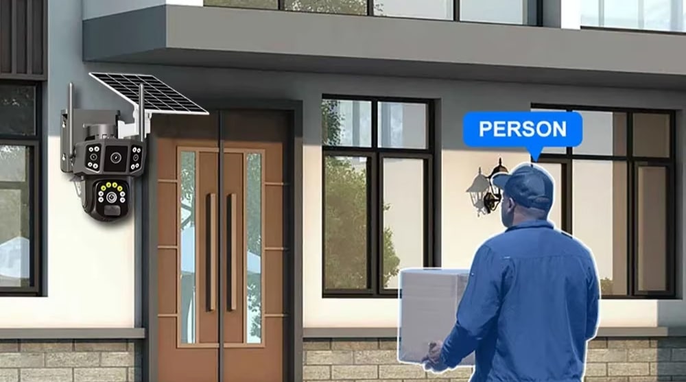 The 360° coverage eliminates blind spots completely, a rare feature in solar-powered cameras. Its pan-and-tilt mechanism provides comprehensive monitoring of large areas from a single installation point.